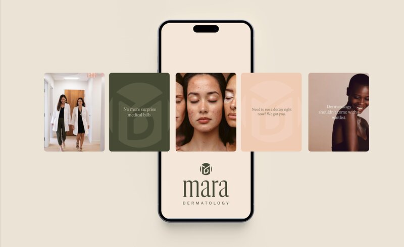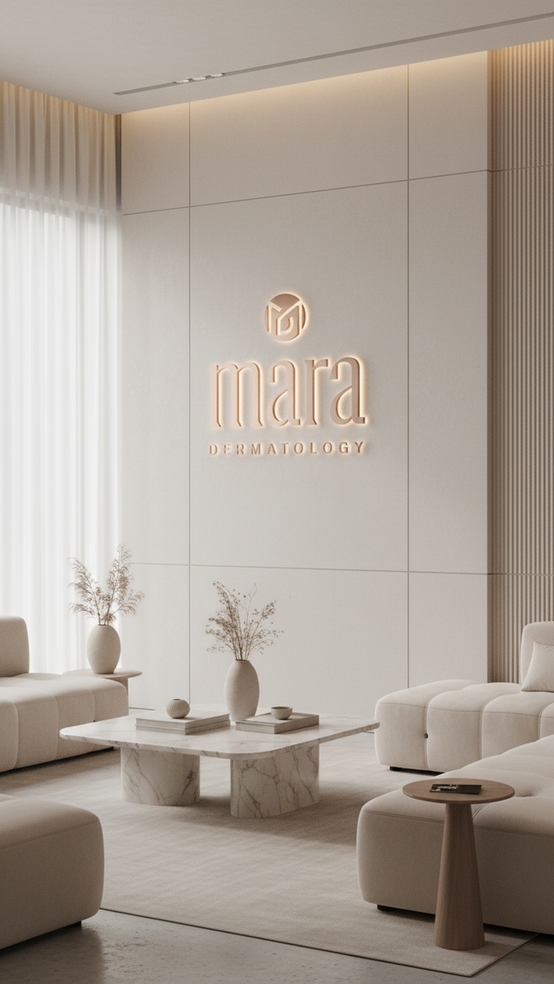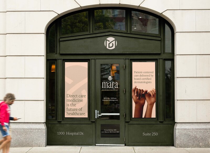 When it came to the logo, Dr. Rahbar loved that Mara Dermatology’s initials formed “MD.” As a medical practice, it felt fitting and was a clever coincidence. The emblem was created as an abstract interpretation of those initials, designed to pair seamlessly with the wordmark while remaining strong and recognizable on its own.